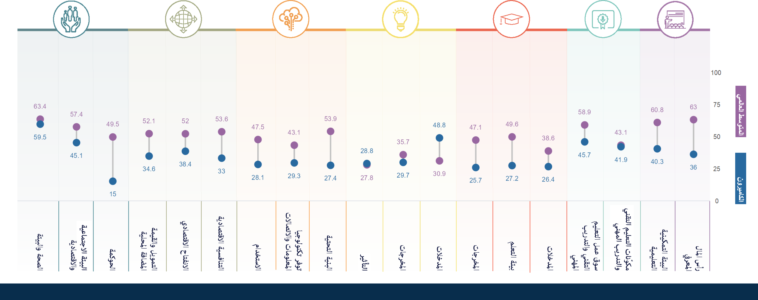 انقر على المؤشرات القطاعية للحصول على معلومات مفصلة.