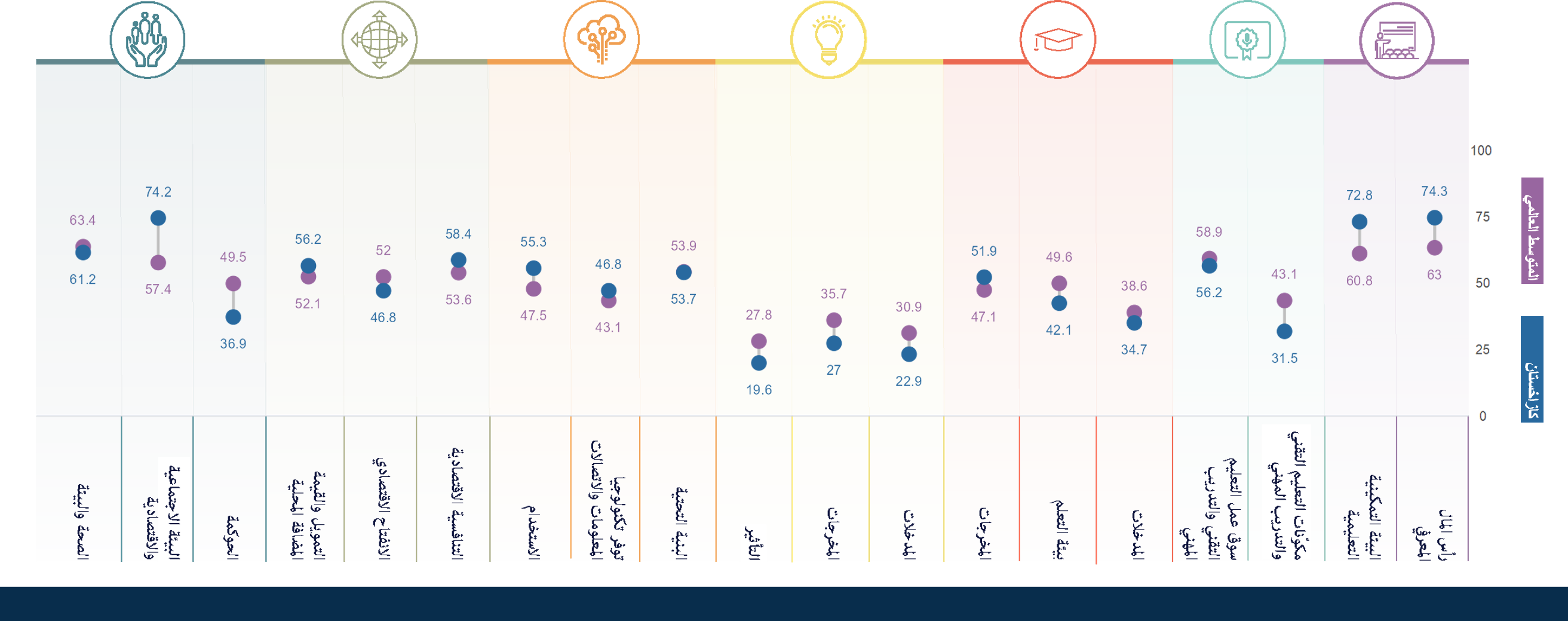 أداء الدولة متواضع من حيث البنية التحتية المعرفية. حيث تحتل المرتبة 72 بين 141 دولة في مؤشر المعرفة العالمي 2024 والمرتبة 58 بين 59 دولة ذات تنمية بشرية مرتفعة جدًا.