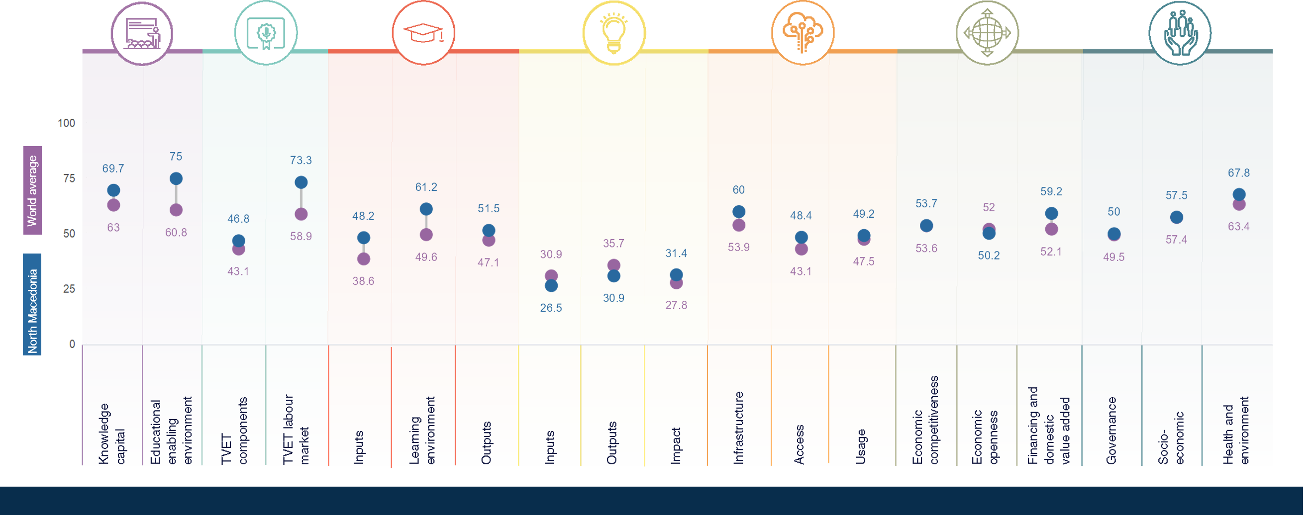 North Macedonia is a strong performer in terms of its knowledge infrastructure. It ranks 48th out of 141 countries in the Global Knowledge Index 2024 and 2nd out of the 35 countries with high human development.